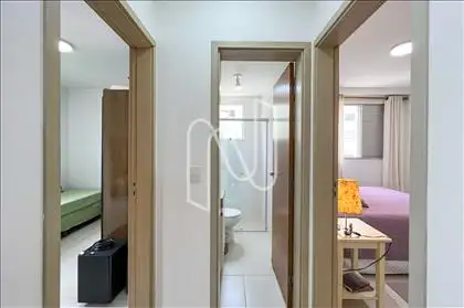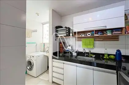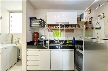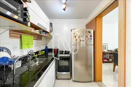 - O apartamento conta com sala para 02 ambientes integrada a uma varanda com fechamento em vidro, proporcionando conforto e ótima iluminação natural. A cozinha com armários planejados é funcional e possui área de serviço independente. São 02 quartos, sendo 01 suíte, além de banho social bem distribuído. O imóvel dispõe de 02 vagas de garagem paralelas e demarcadas.