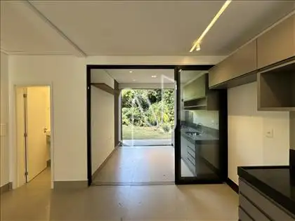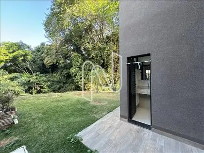 - No primeiro pavimento, encontra-se uma sala, totalmente planejada, cozinha grande com conceito aberto, repleta de armários sob medida, integrada à área gourmet externa, também planejada, com lavabo e vista livre para a mata.