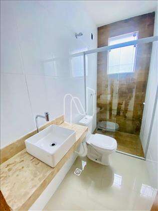 * Banheiro Social com bancada em granito, cuba da pia de sobrepor e box em vidro temperado;