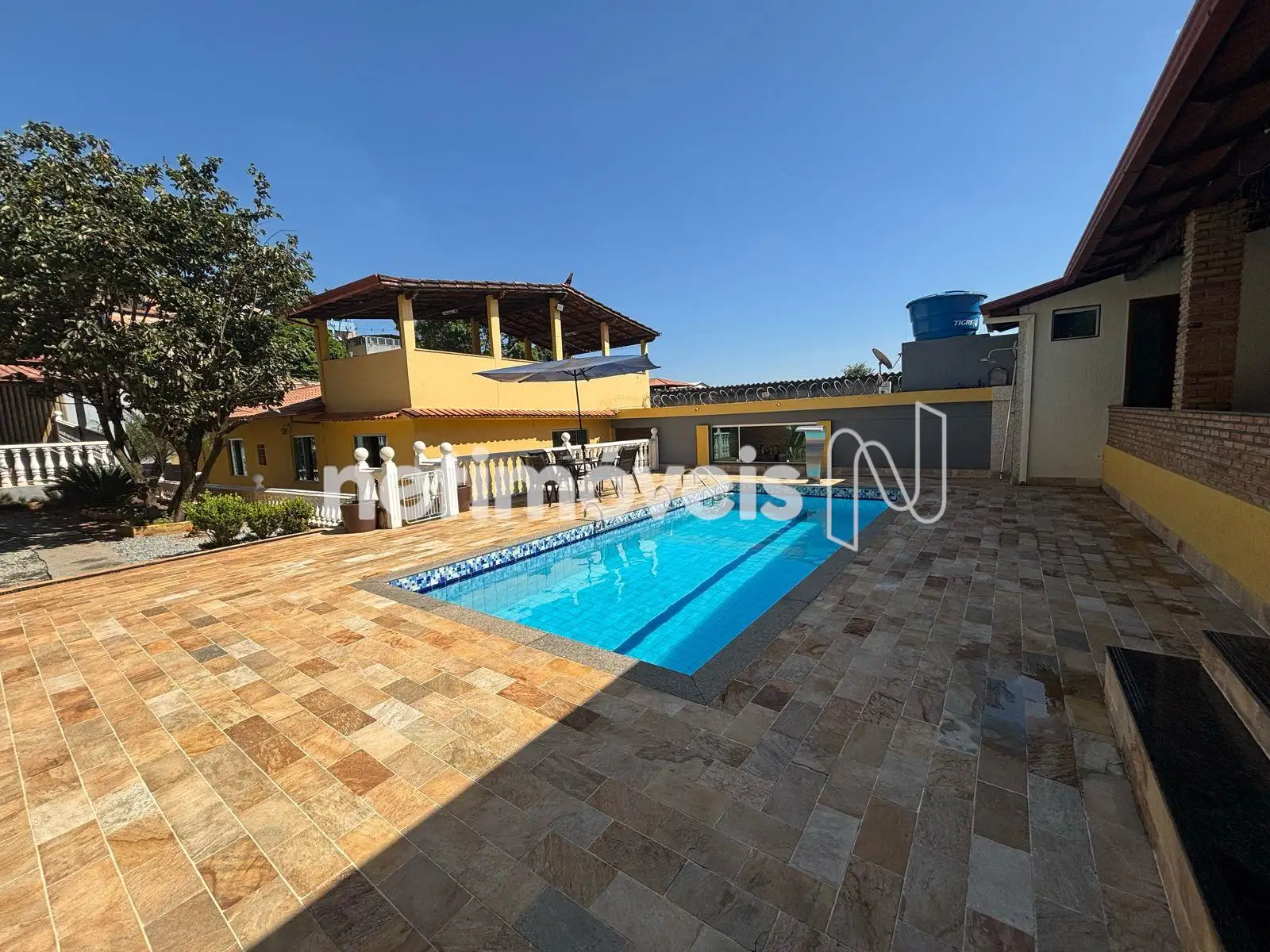 Piscina azulejada para momentos de lazer e diversão.