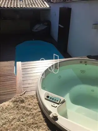 Casa,4 quartos, sendo dois suítes u.m com closet , todos com ar condicionado Sala tv Sala jantar Espaço gourmet todo montado com fogão a lenha e churrasqueira Piscina com cascata Sauna Spa jacuzzi 8 lugares 4 vagas de garagem, cabem até 5 carros