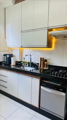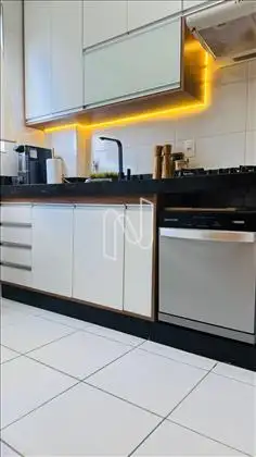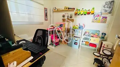 Primeiro piso: Sala 2 ambientes, cozinha com armários, banheiro social, 2 quartos sendo um suíte com varanda e ar condicionado, banheiros com Box de vidro e armários, porcelanato nos pisos